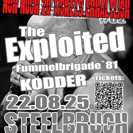 PUNK’S NOT DEAD: THE EXPLOITED IN HÜTTE! „Keiner geht noch, keiner geht noch rein“. Heute Abend verwandelt sich der STEELBRUCH in eine …