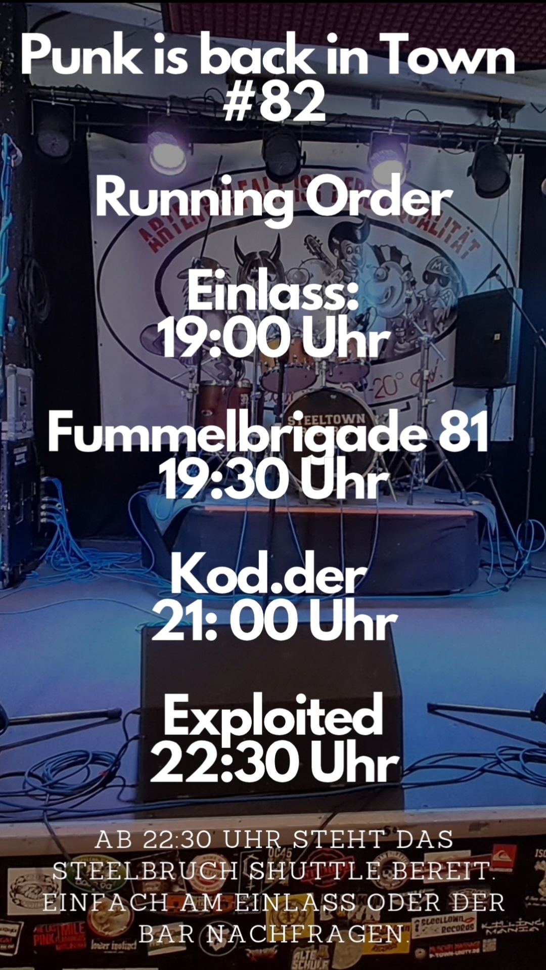 PUNK’S NOT DEAD: THE EXPLOITED IN HÜTTE! „Keiner geht noch, keiner geht noch rein“. Heute Abend verwandelt sich der STEELBRUCH in eine …
